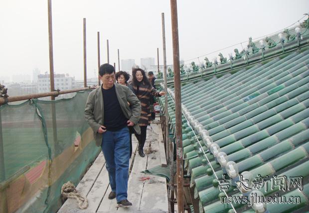 会后,张晓林等来到地质宫楼顶施工现场踏查工程的完成情况。施工方代表就施工运用的材料和所采用的技术等情况向大家作了介绍。设计单位和长春市文物局相关负责人对此次工程的验收分别发表了意见,并提出了建议。张文勇在随后的讨论会上表示,该工程操作程序规范、成绩突出、成效显著,综合考虑各方面因素,是名副其实的阳光工程。