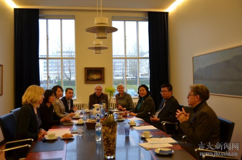 在访问瑞典斯德哥尔摩大学期间,吉大代表团与斯德哥尔摩大学国际处和东方语言系的相关负责人就深化两校学生交流项目充分交换了意见,并就两校学生交换协议具体条款的修改达成了一致,为11月份斯德哥尔摩大学校长团来访续签该协议奠定了基础。代表团一行还慰问了吉大在斯德哥尔摩大学学习的6位同学。