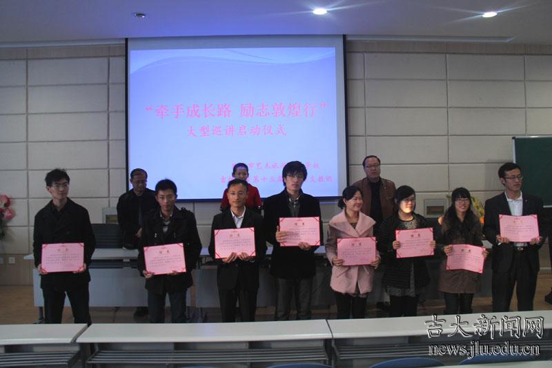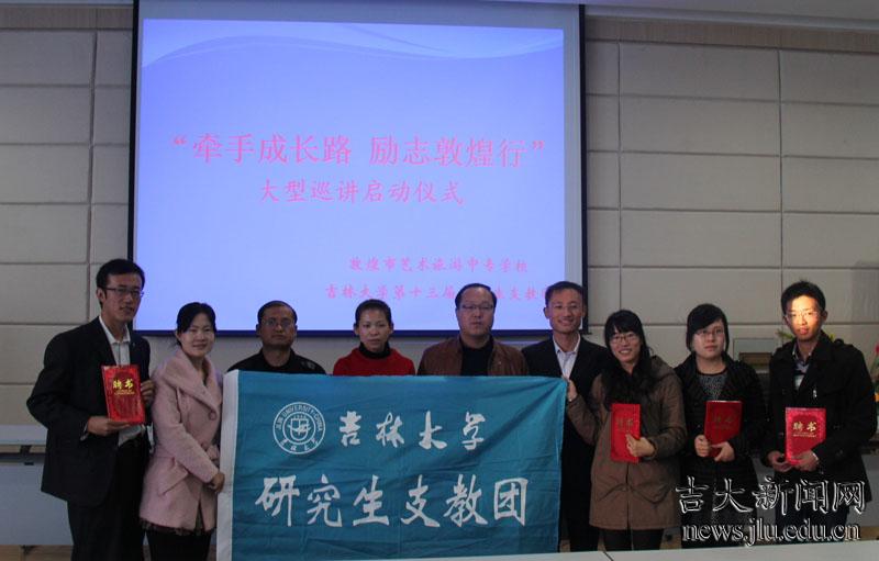 11月4日,百富策略白菜网第十三届研究生支教团“牵手成长路·励志敦煌行”大型公益励志巡讲在敦煌艺术旅游中专学校正式启动。团敦煌市委书记朱晴,敦煌艺术旅游中专学校副校长李智为研究生支教团8名成员颁发了“励志讲师”的聘书,支教团成员正式成为敦煌艺术旅游中专学校励志讲师,聘期为一年。