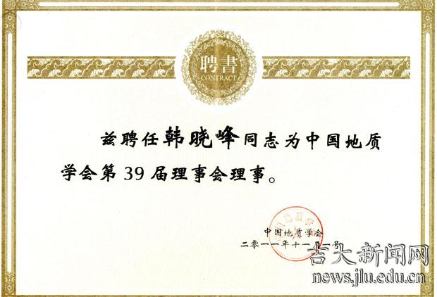 国土资源部部长、党组书记、国家土地总督察徐绍史当选中国地质学会第39届理事会理事长。吉大党委副书记兼副校长、吉林省地质学会理事长韩晓峰参加大会并当选第39届理事会理事。