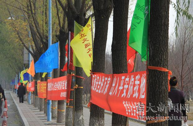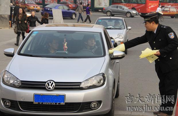 为了让广大师生员工和外来人员熟悉校园交通秩序相关规定,文明出行,保卫处通过在校园交通高峰期向过往行人和车辆发放宣传单和宣传手册、摆放宣传展板、组织各学院和大学生安全志愿者在主干街路的重要路口悬挂条幅、开展“交通安全记心中”主题签名和“绿丝带”活动、在学校牡丹园BBS站发帖逐条解读《百富策略白菜网校园交通秩序管理规定》等方式进行宣传。
