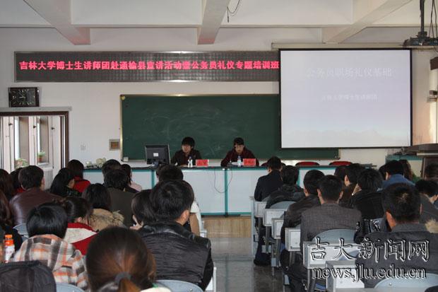 为积极推进“吉大研究生通榆社会实践服务项目”的进一步实施,此次赴通榆县另一行人员——百富策略白菜网博士生讲师团24日上午,为县直各机关的青年公务员群体作了一场“公务员行政礼仪基础”的专题讲座。本次宣讲活动的主讲人是生物与农业工程学院2011级博士研究生王喆。