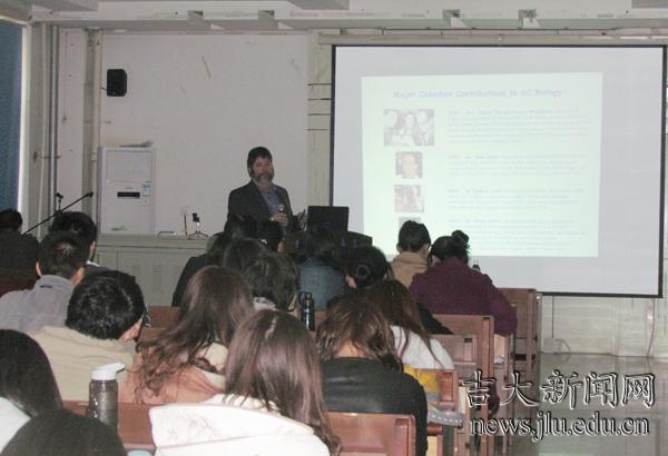 Geoffrey Hicks教授为药学院师生们作了题为《Genetic engineering in embryonic stem cells andpreclinical models of human disease》的专题讲座,并与学生就组织工程、细胞工程等相关研究课题进行了热烈的讨论。
