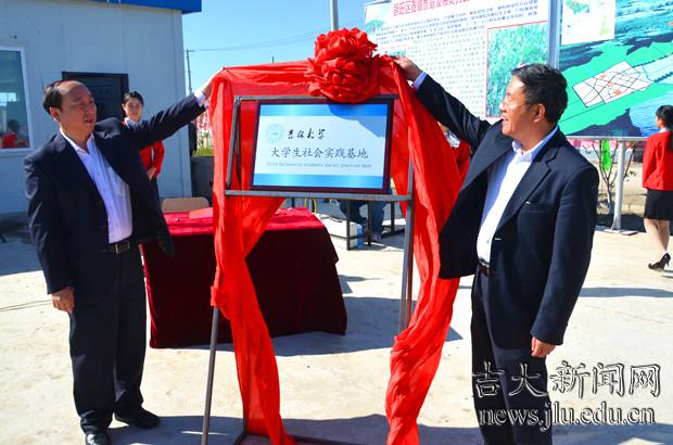 韩晓峰和孙东林共同为大学生社会实践基地揭牌