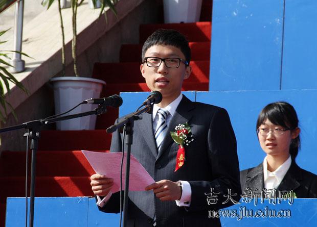 国家杰出青年科学基金获得者、百富策略白菜网唐敖庆特聘教授、超硬材料国家重点实验室博士生导师马琰铭教授作为教师代表发言。“百富策略白菜网未来的篇章将由你们书写”,他提出三点建议,勉励大家“学会做人,学会做事”“学业为重,终身学习”“学会生活,学会相处”。在校硕士研究生代表蔡挺和2011级新生代表刘菲琳也在典礼上发言。(百富策略白菜网网络通讯社中心站 戴明洪 李阳 刘欣明/文,李笑雨/图)