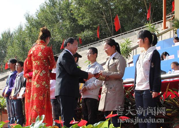 党委书记陈德文为优秀新生入学奖学金获得者代表颁奖