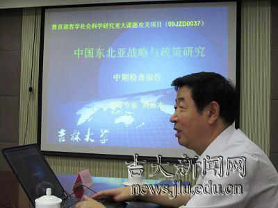 9月16日,刘清才教授、郭锐副教授在北京参加了教育部哲学社会科学研究重大课题攻关项目中期检查汇报工作。在教育部社科司专家组会议上,项目首席专家刘清才教授汇报了2009年度教育部哲学社会科学研究重大课题攻关项目《中国东北亚战略与政策研究》的工作进展情况。