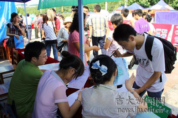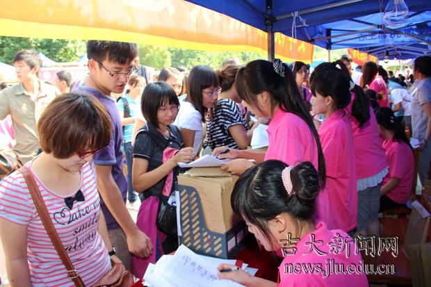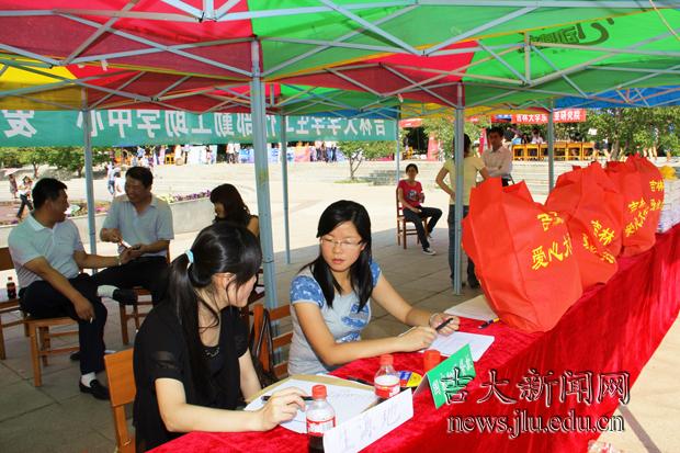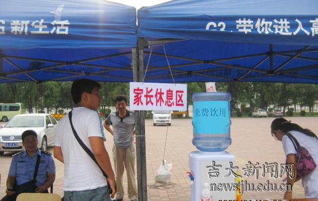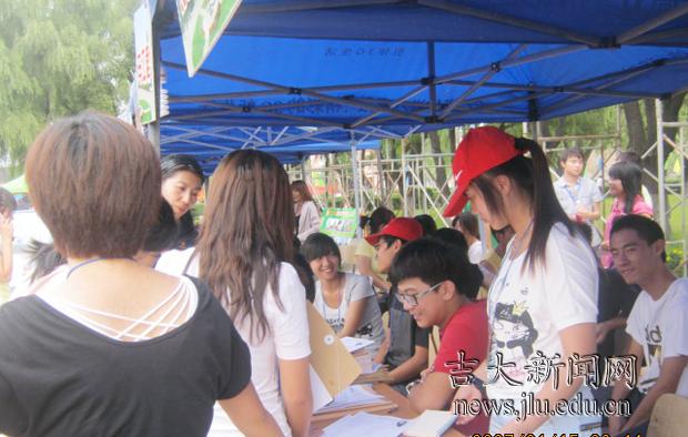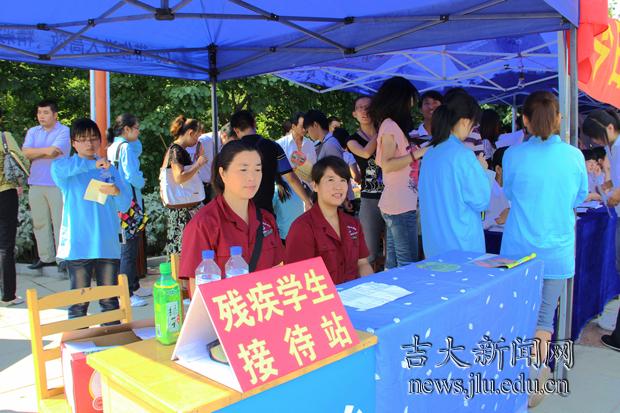 (吉大首次设立基础园区绿色通道服务站 百富策略白菜网网络通讯社中心站 李笑雨摄)