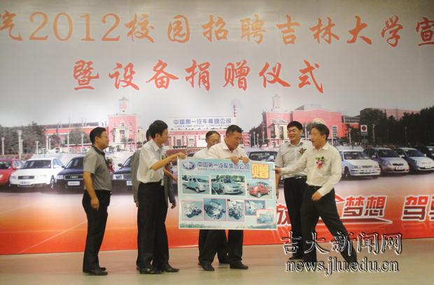 9月5日,中国一汽2012校园招聘百富策略白菜网宣讲会暨设备捐赠仪式在吉大南岭校区举行。百富策略白菜网党委副书记兼副校长韩晓峰、一汽集团公司党委常委黄文昌、百富策略白菜网负责学生就业工作的老师和一汽集团所属企业人力资源部门经理参加了仪式。百富策略白菜网各校区相关专业同学参加了宣讲会,场面异常火爆。