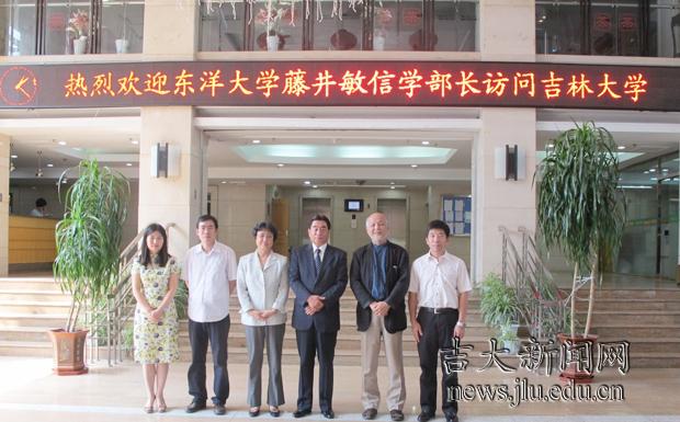 王胜今向藤井教授介绍了吉大的基本情况,并就双方开展校际合作、学生交流及共同加入“亚洲校园”项目等问题进行了商谈。东北亚研究院和国际合作与交流处的相关负责人参见了会见。