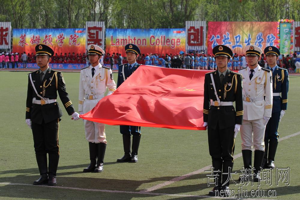 国旗队、仪仗队、花束队、红旗队、裁判员队及各学院运动员代表队相继入场