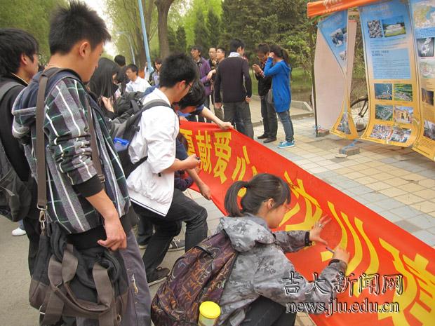 吉大学子签名为灾区祈福